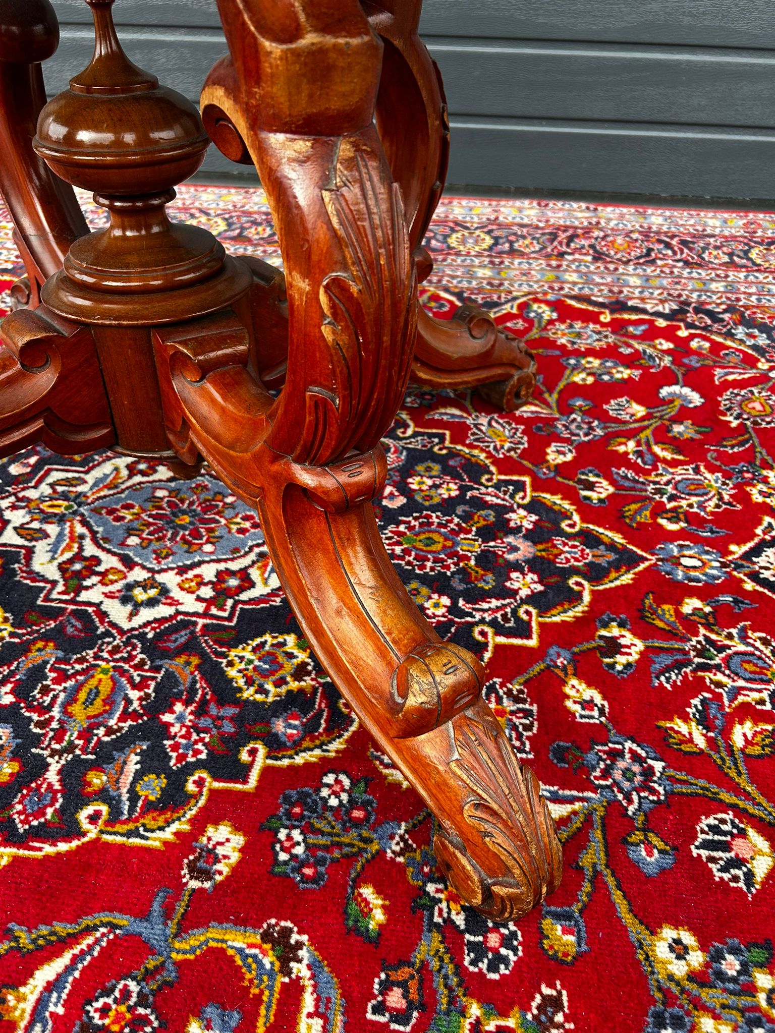 ✔ Mistrzowskie rzeźbienia – ręcznie wykonane detale na nogach i krawędziach blatu dodają charakteru i unikalności.