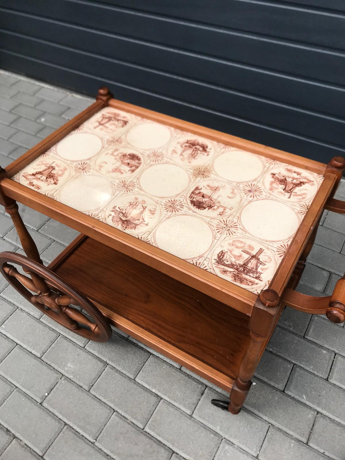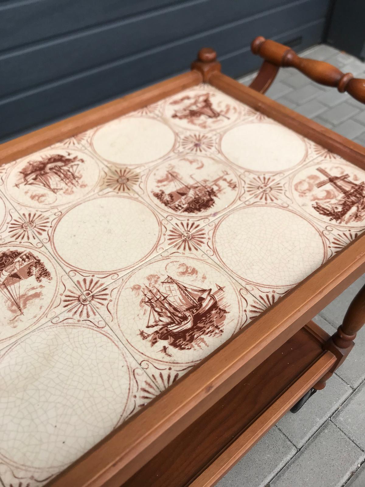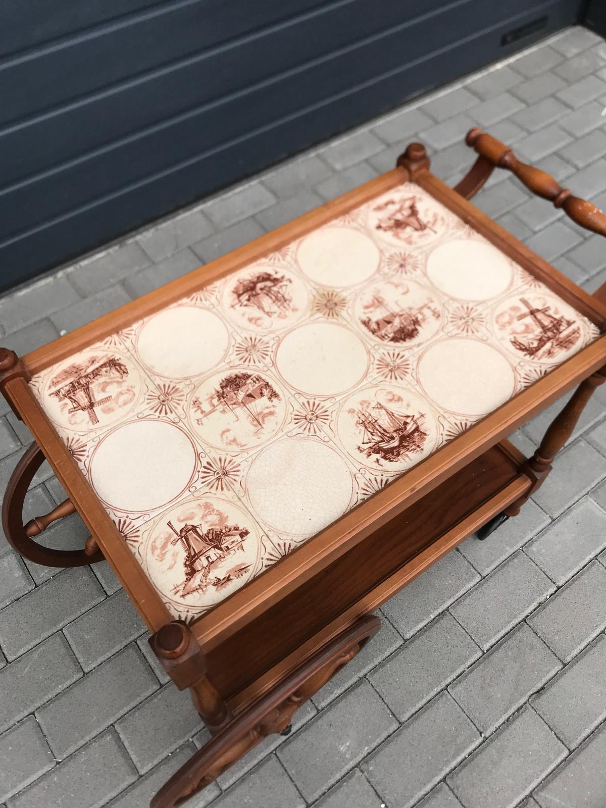 Na górnym blacie wyłożone są ozdobne kafelki z motywem młyna.
