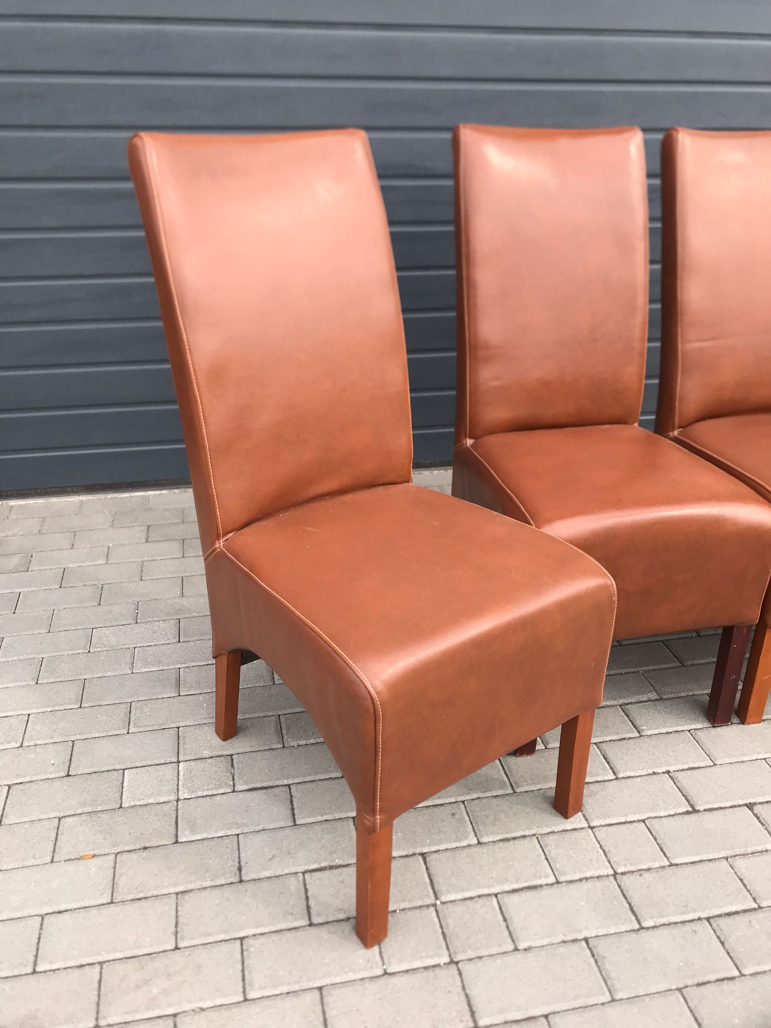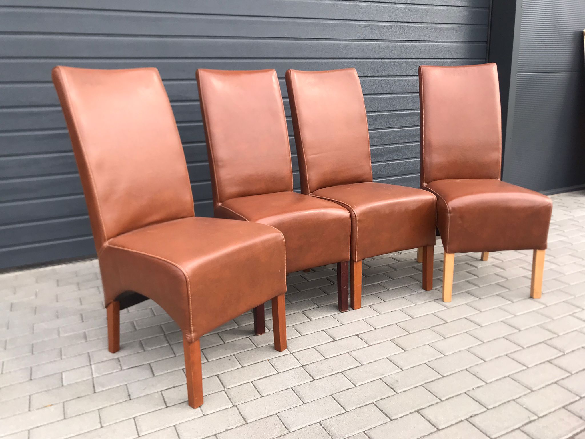Komplet czterech krzeseł salonowych z wysokim oparciem.