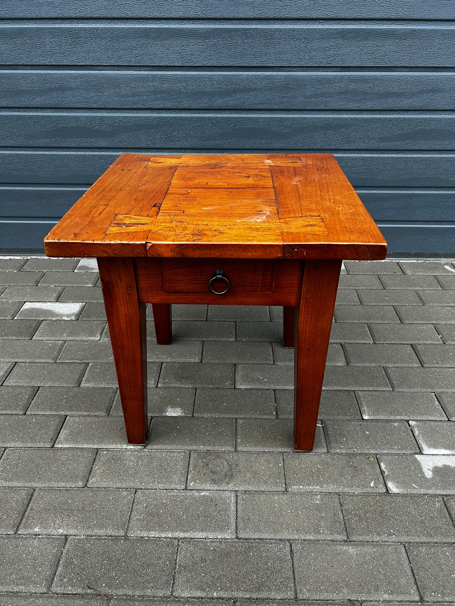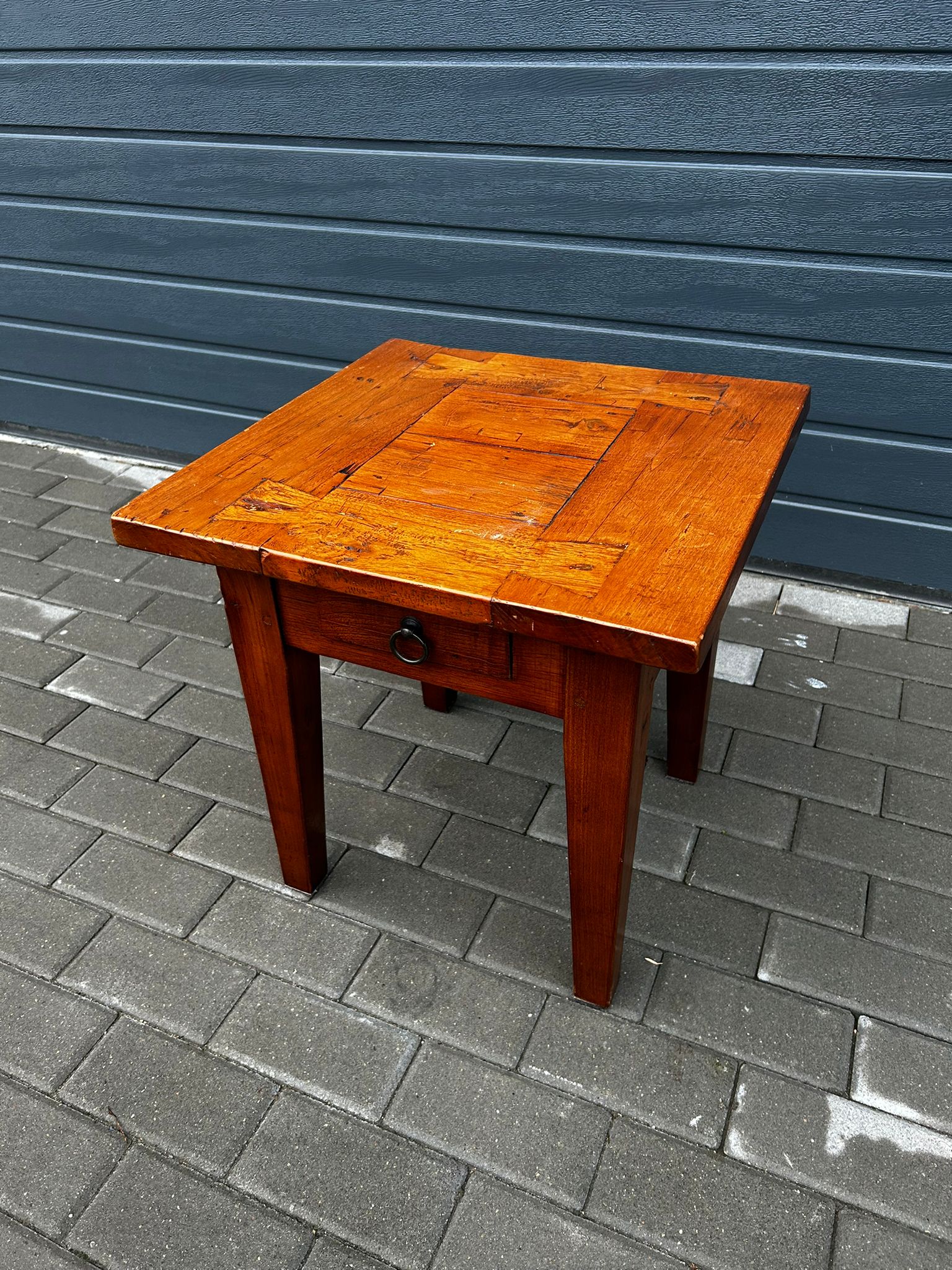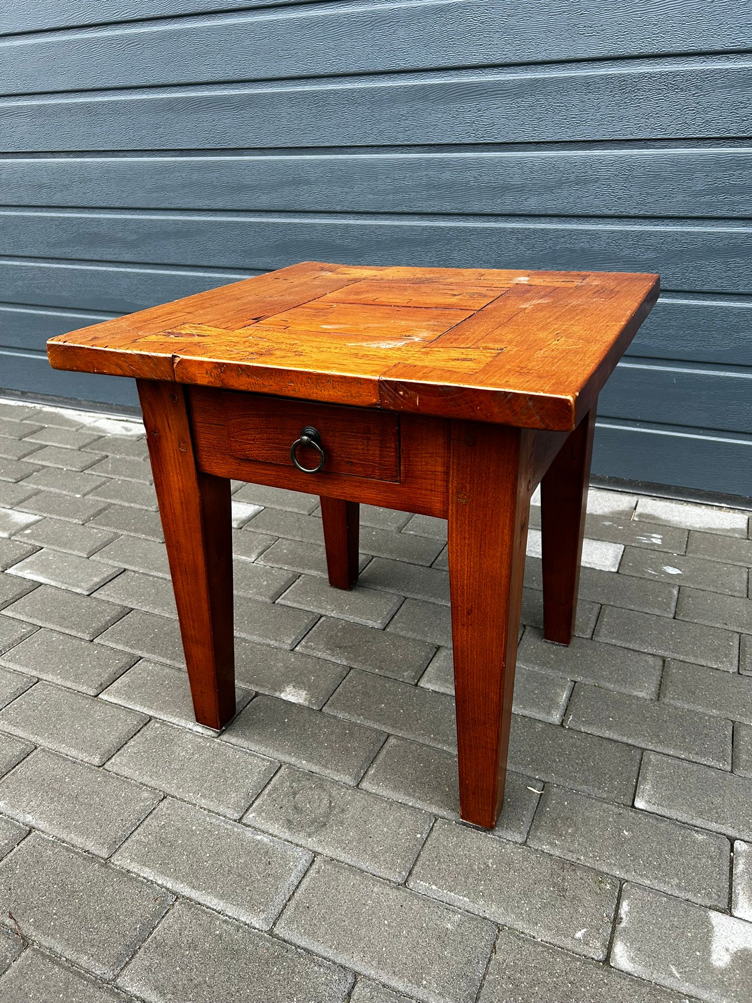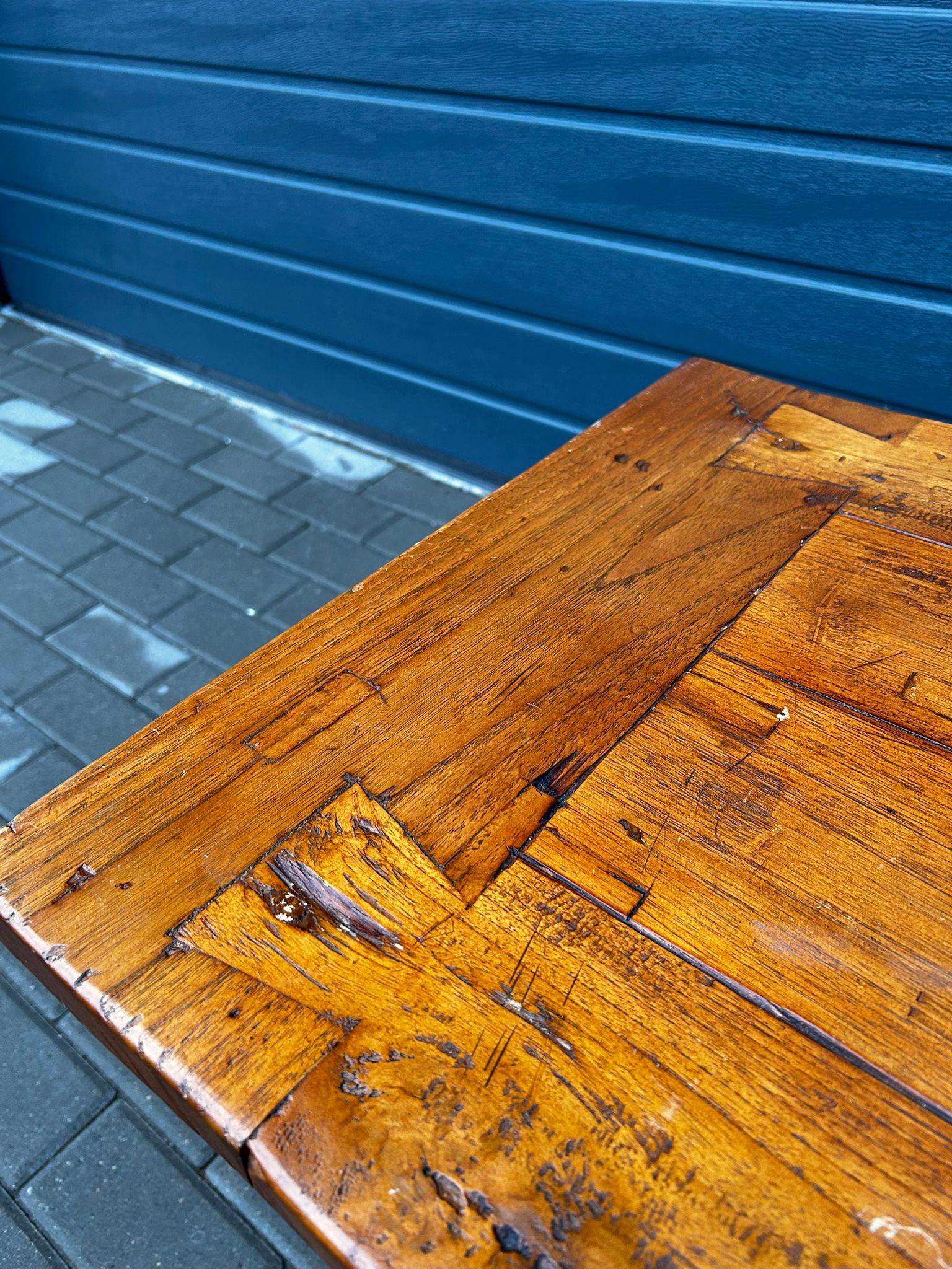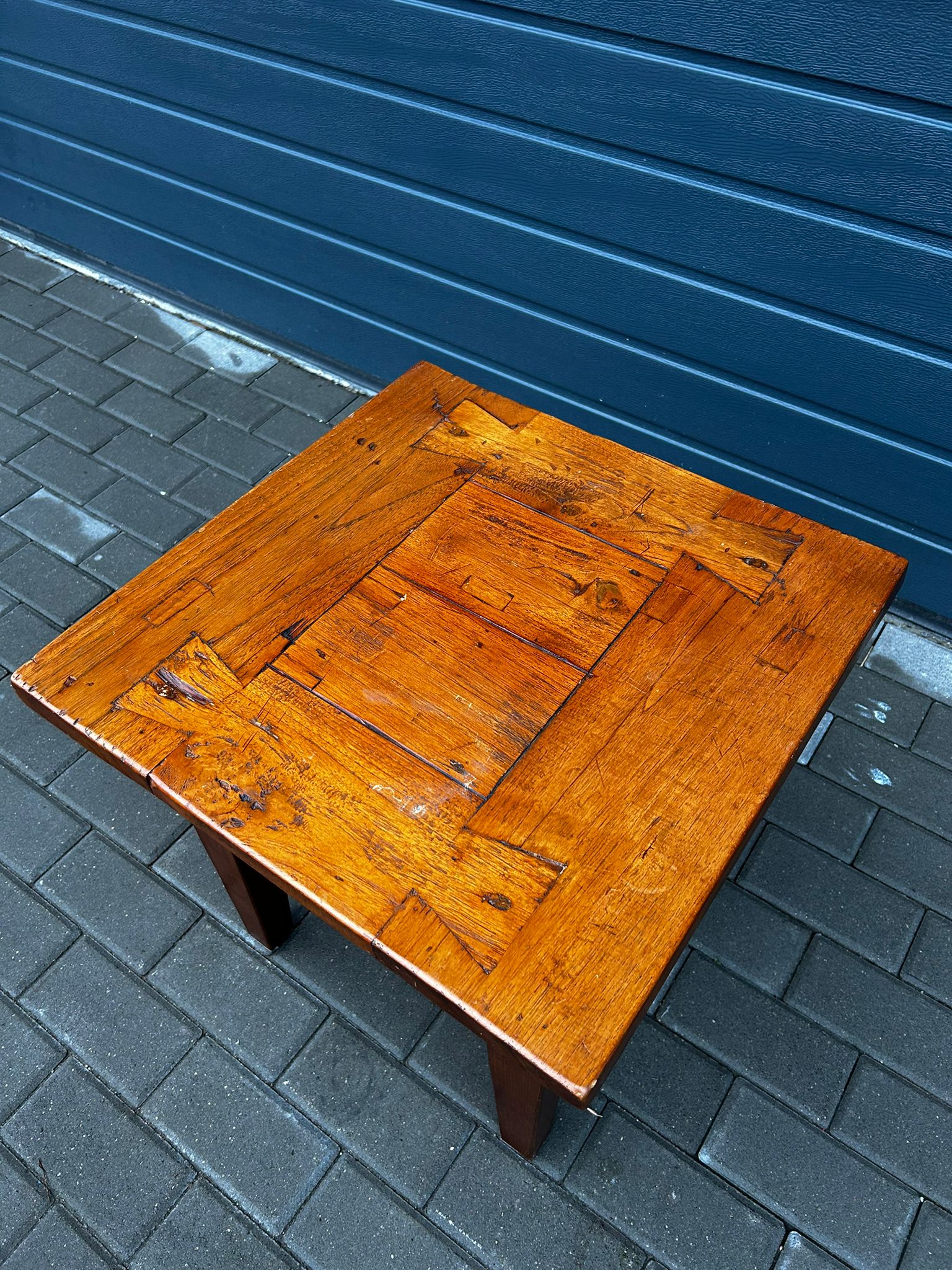Rustykalny stolik kawowy vintage, wykonany w całości z litego drewna.