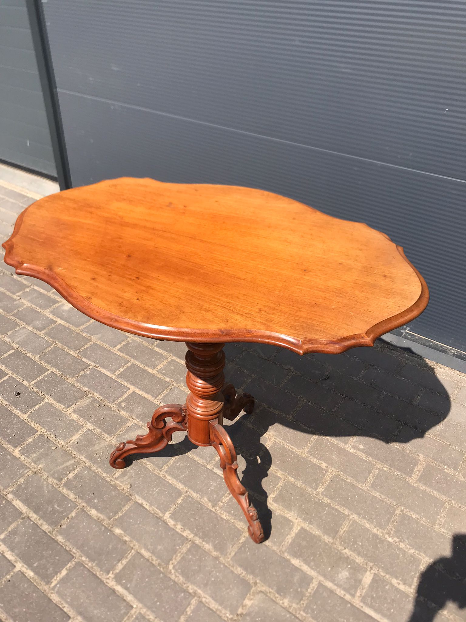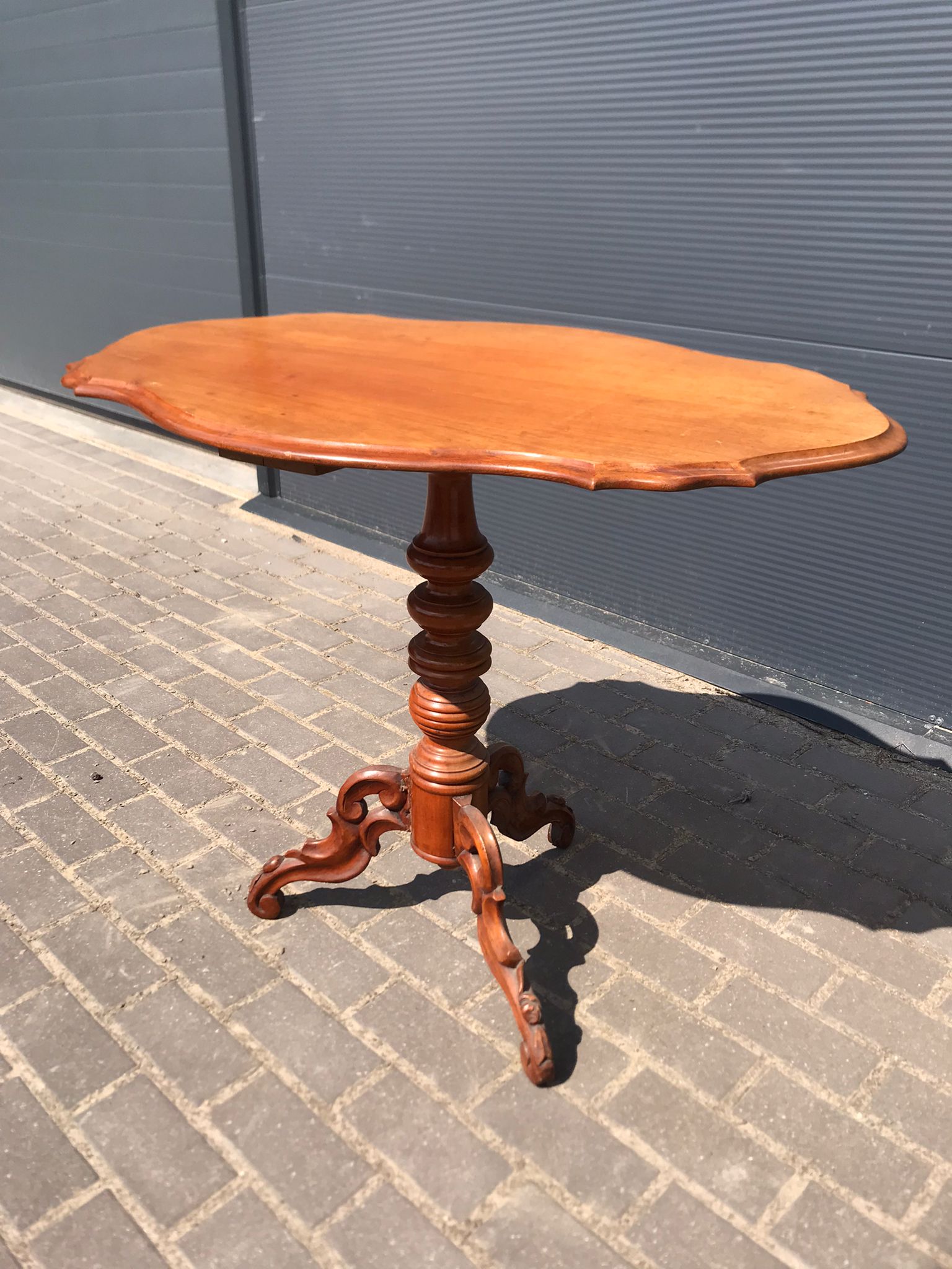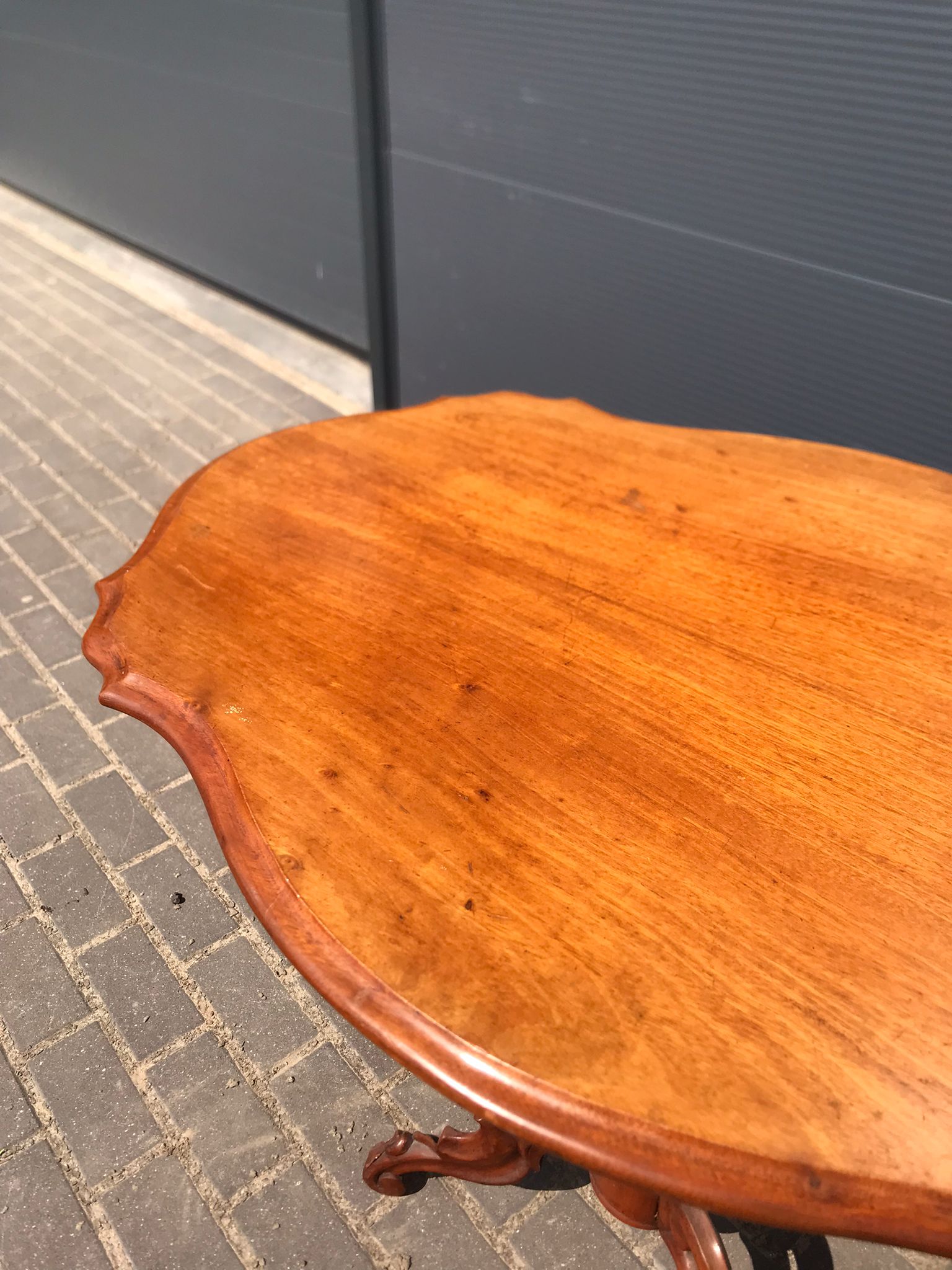 Podstawa to toczona kolumna z której rozchodzą się trzy rzeźbione wygięte nogi zakończone wolutą.