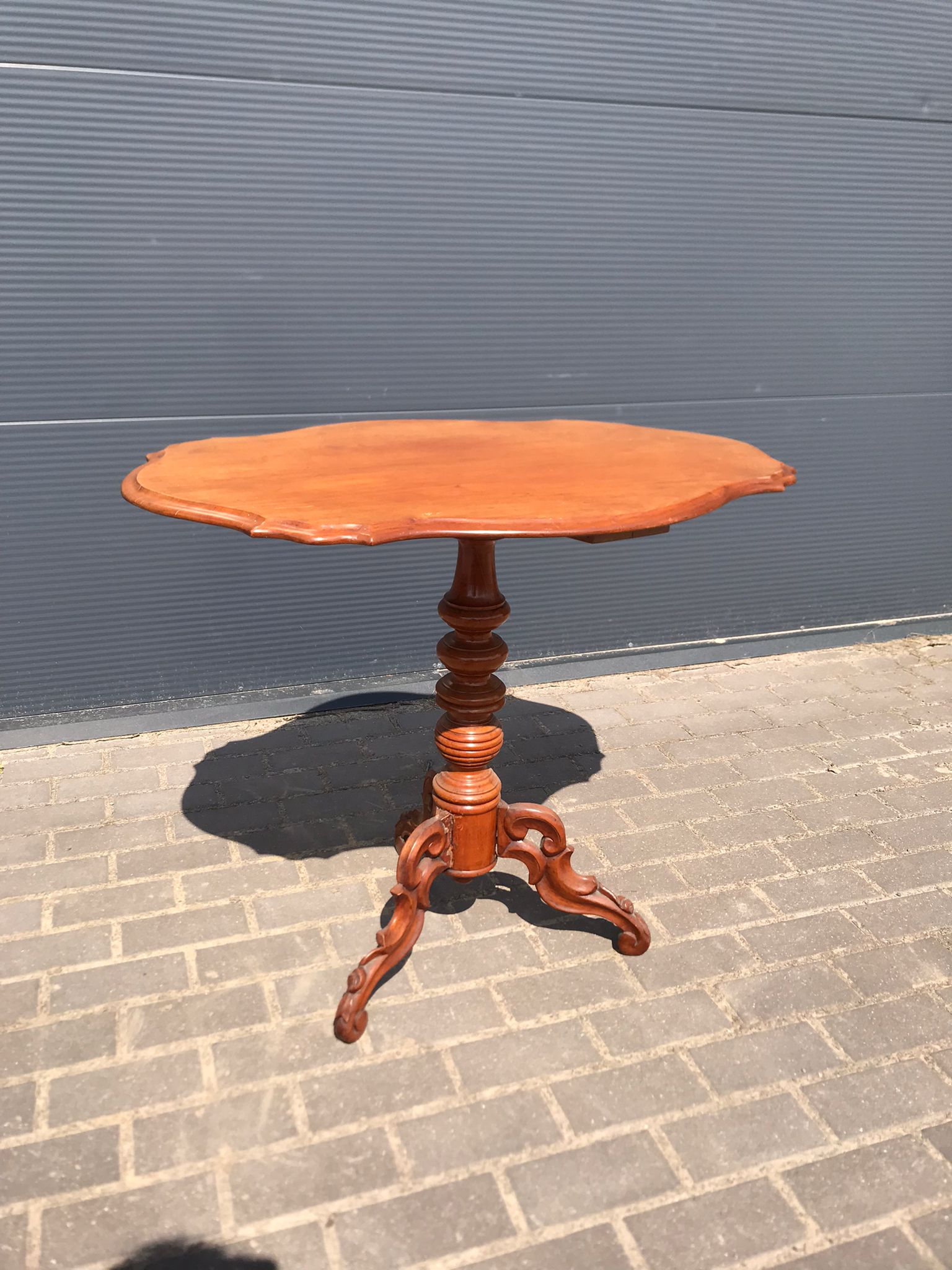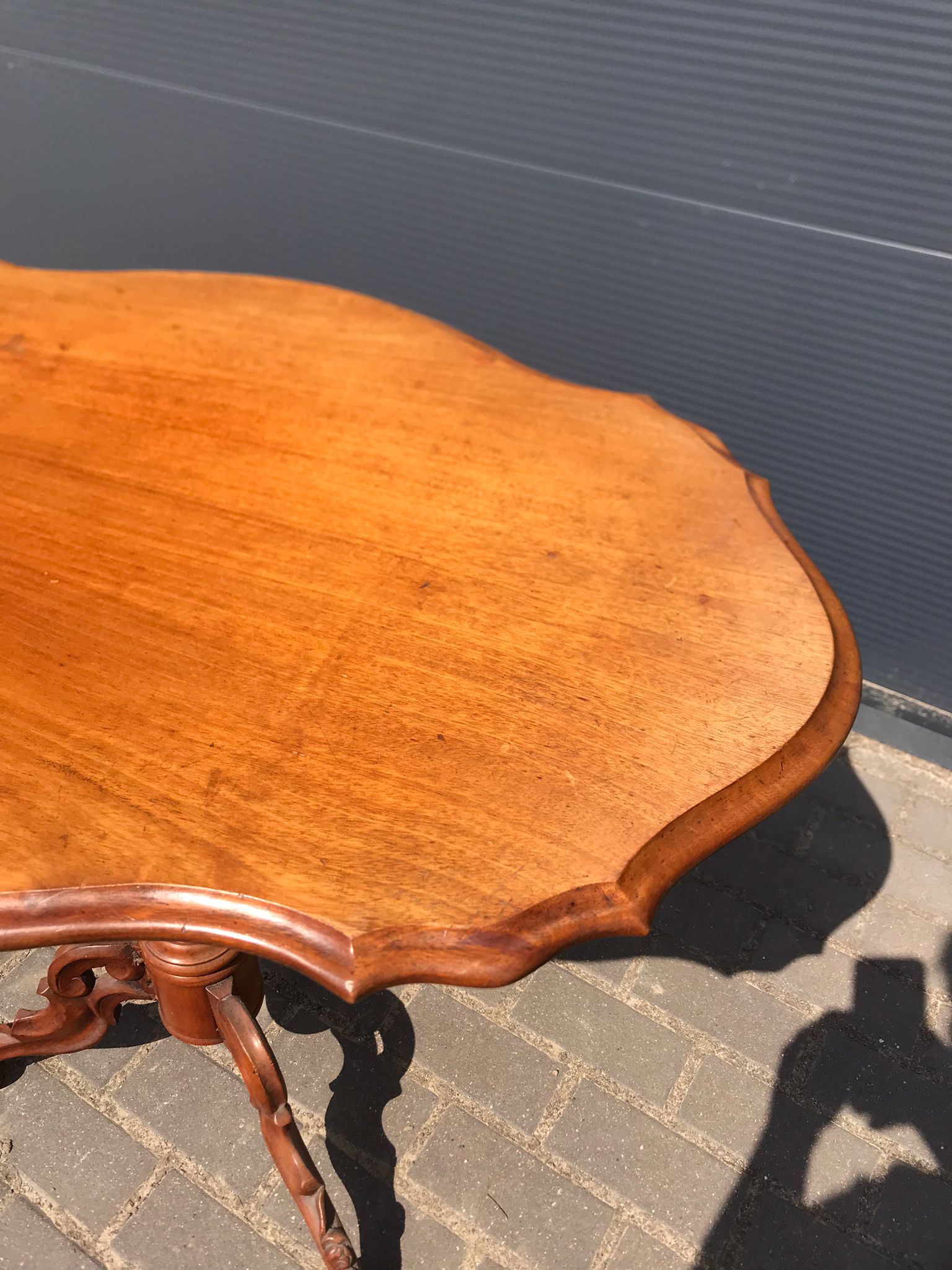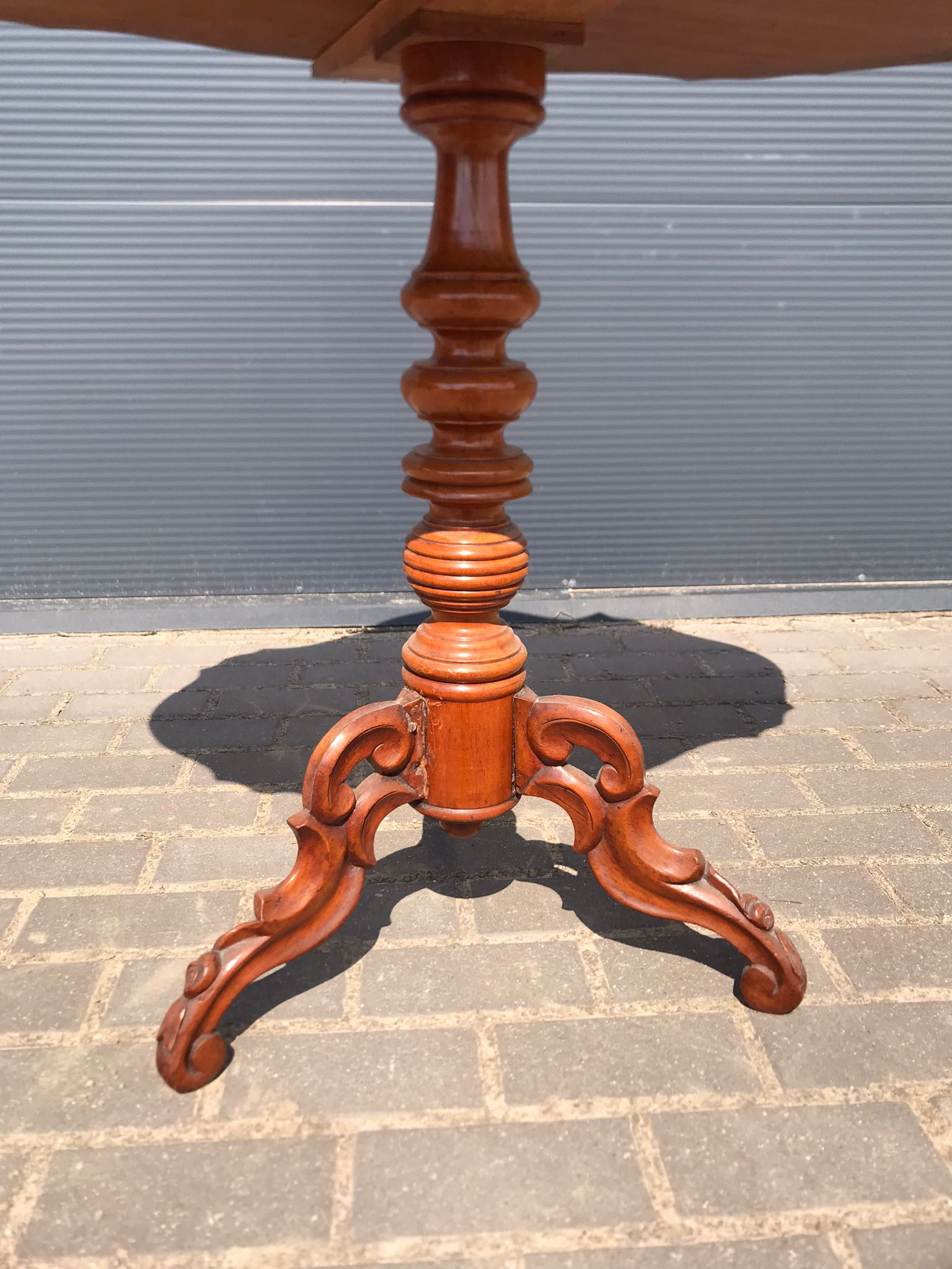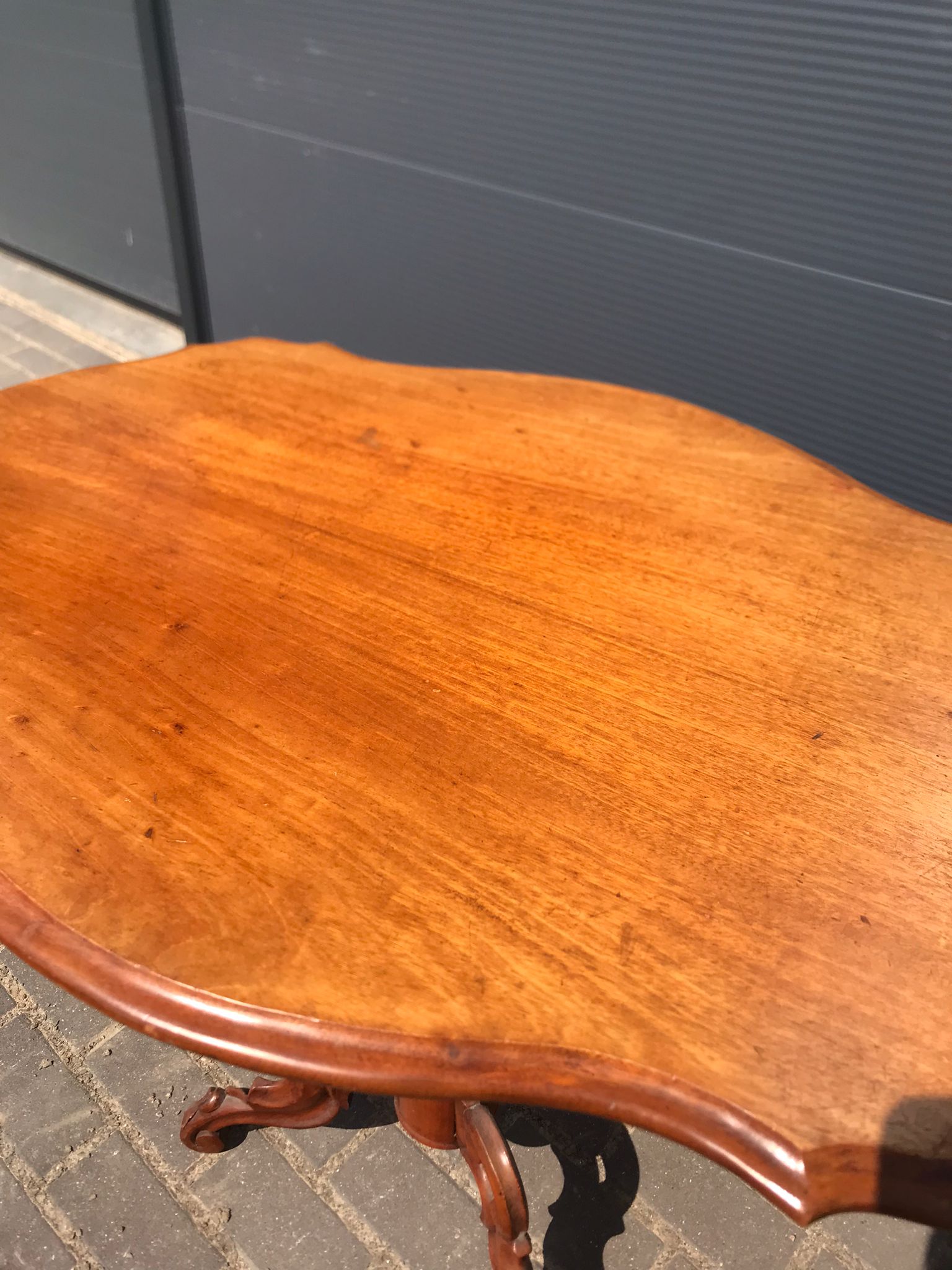 Podstawa to toczona kolumna z której rozchodzą się trzy rzeźbione wygięte nogi zakończone wolutą.