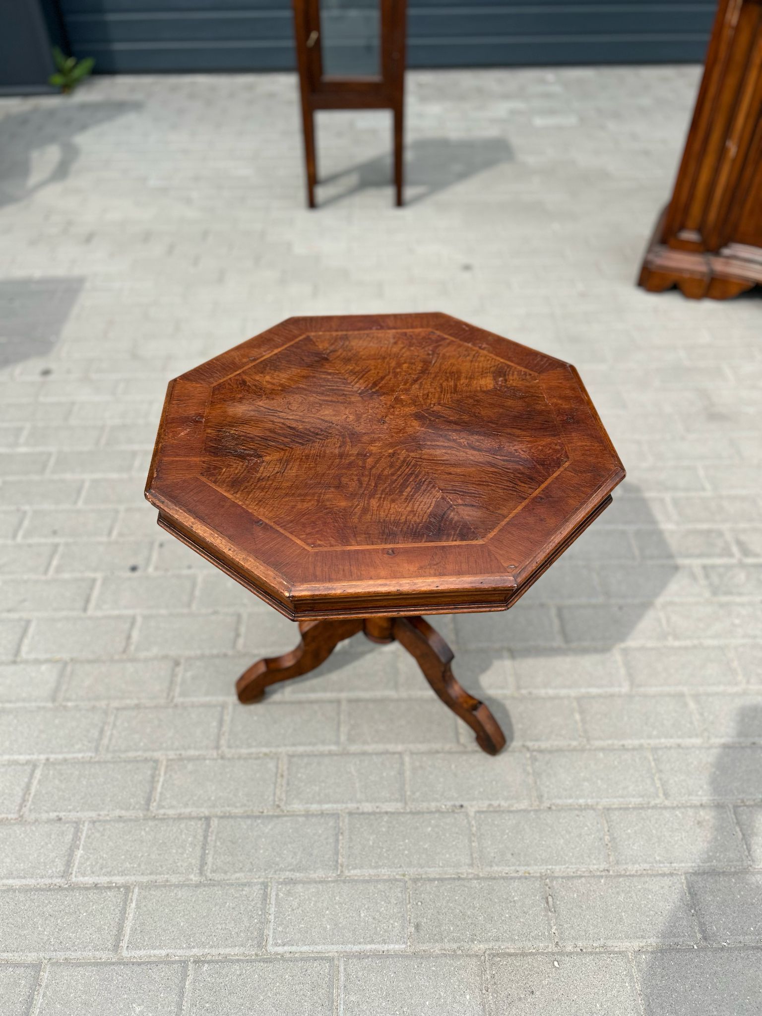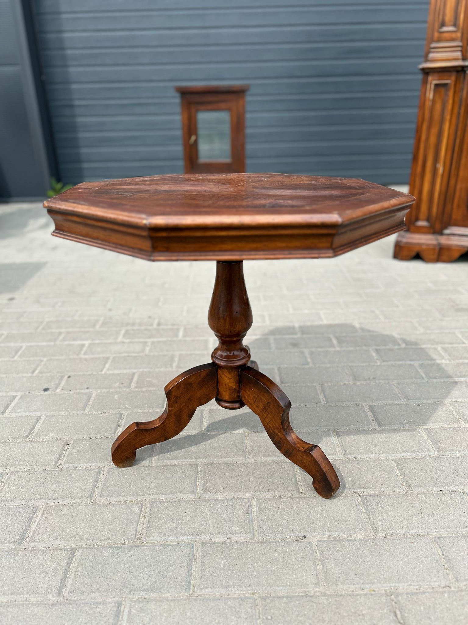 Stolik o ośmiokątnym blacie, wykonany z litego drewna, zachwyca klasyczną formą i delikatnym wybarwieniem.